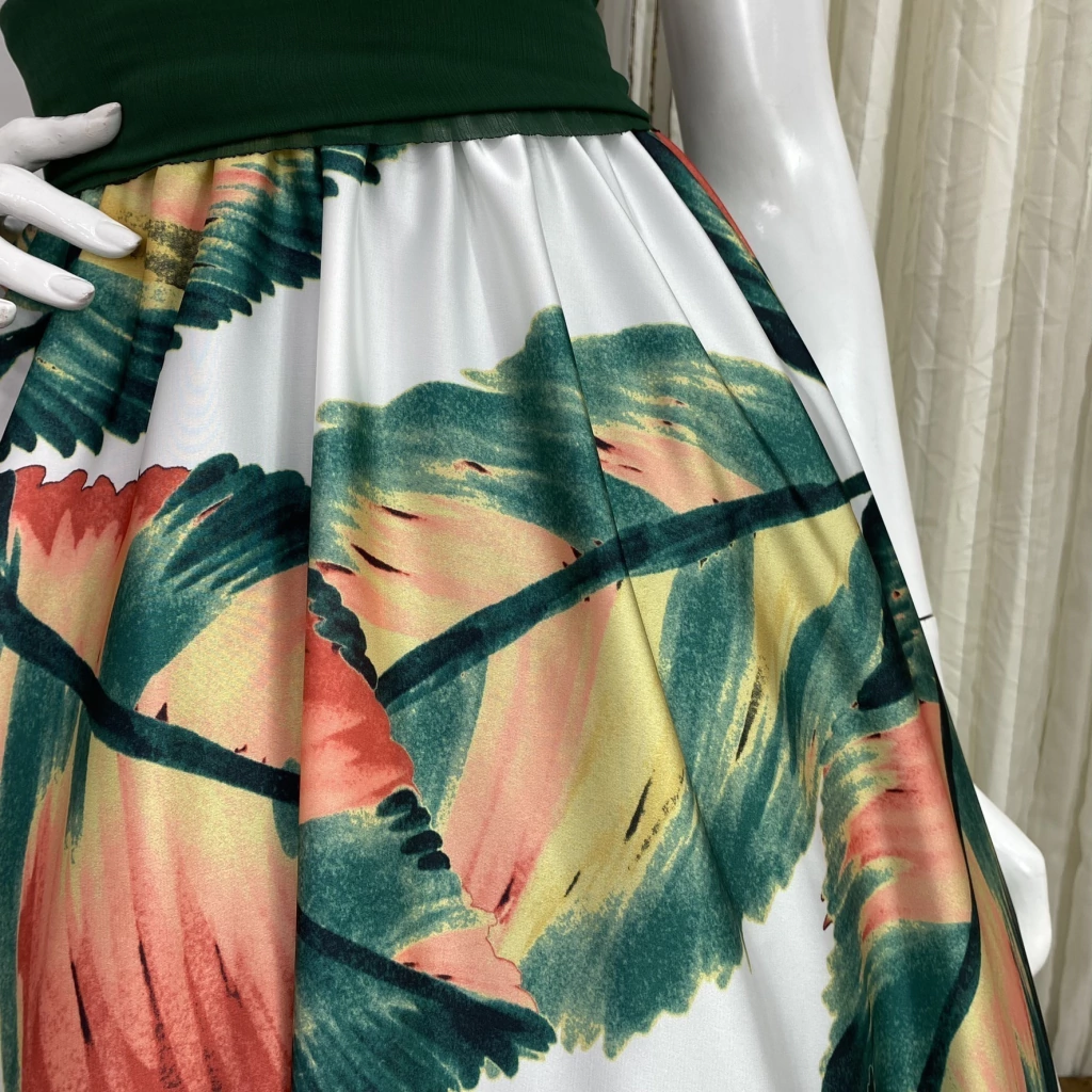 A nossa saia Lorraine foi confeccionada com um mix de tecidos planos de alta qualidade. Sendo ela composta por uma saia de forro feita no cetim charmousse com roda de 4,5m e uma saia principal feita no crepe com roda de 4,5m.